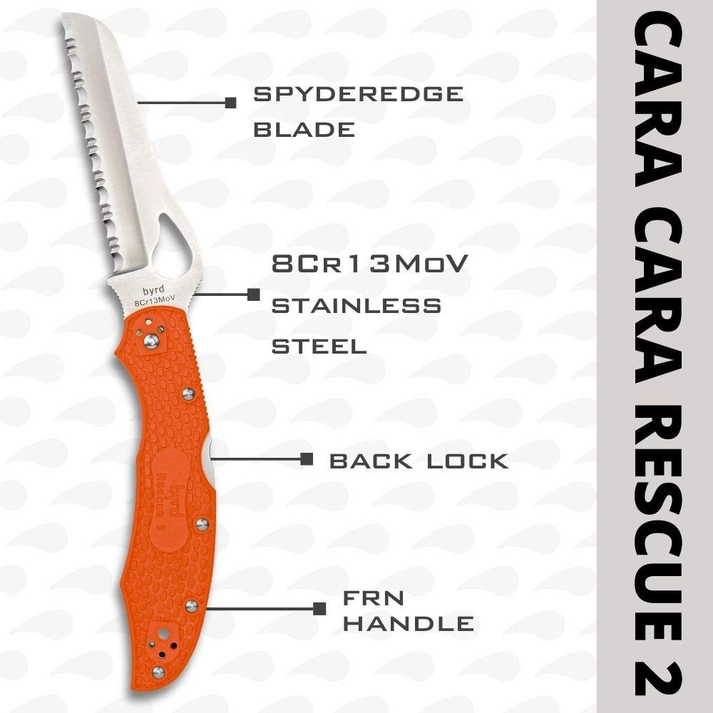 Byrd by Spyderco Cara Cara 2 Rescue Folding Pocket Knife with 3" 8Cr13MoV and FRN Handle - EDC Knife for Men and Women, Perfect for Hunting, Tactical, Camping, Survival - SpyderEdge - BY17SOR2—