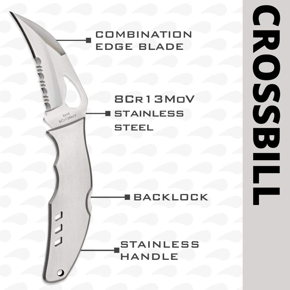 Byrd by Spyderco Crossbill Folding Pocket Knife with 3" 8Cr13MoV Steel Blade and Stainless Steel Handle - EDC Knife for Men and Women, Perfect for Hunting, Tactical - CombinationEdge - BY07PS
