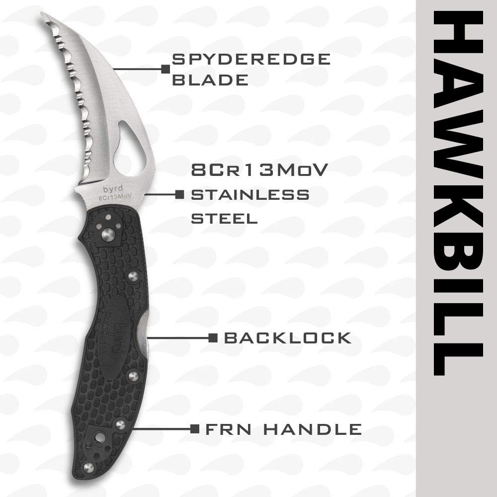 Byrd by Spyderco Hawkbill Folding Pocket Knife with 2" 8Cr13MoV Steel Blade and FRN Handle - EDC Knife for Men and Women, Perfect for Hunting, Tactical, Camping, Survival - SpyderEdge - BY22SBK