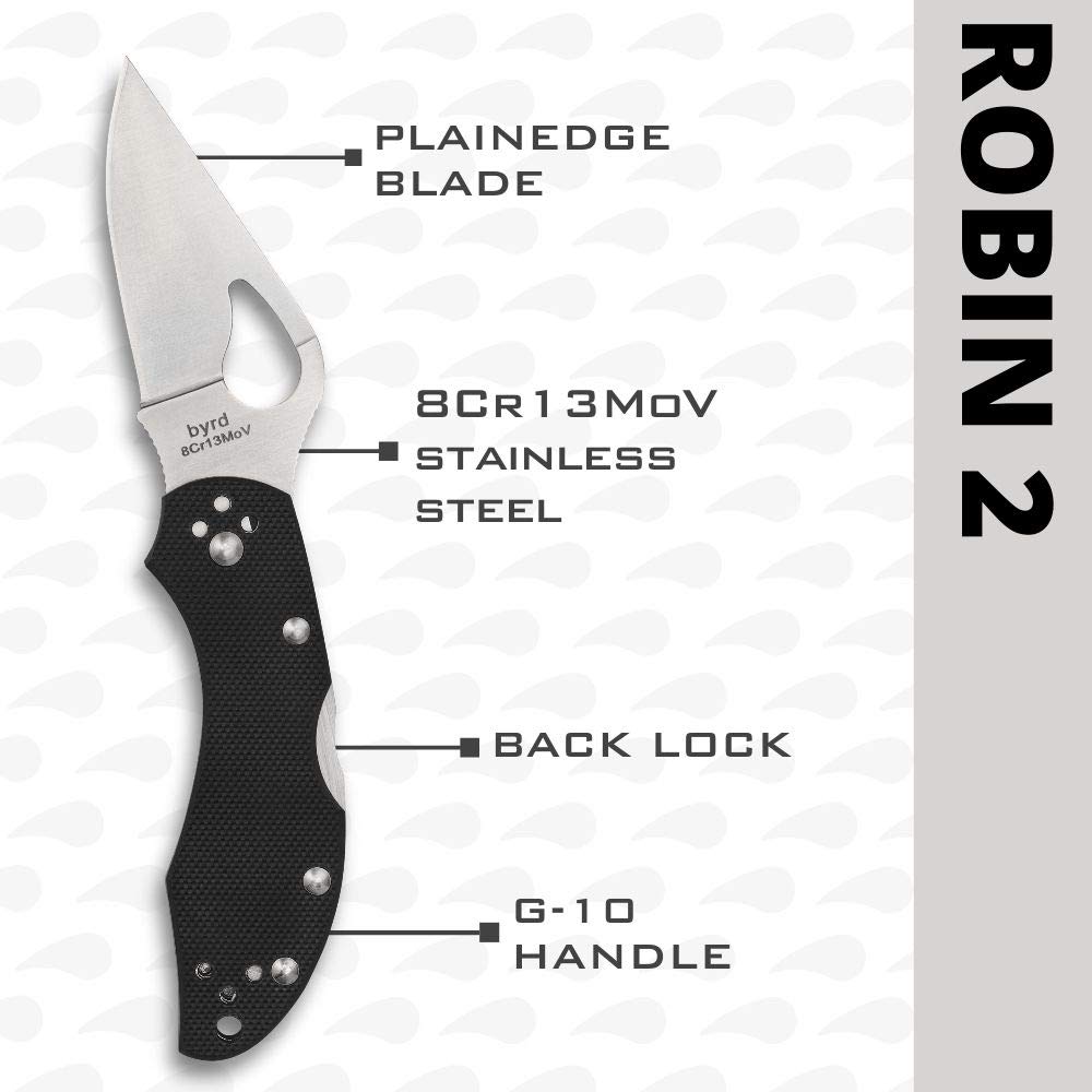 Byrd by Spyderco Robin 2 Folding Pocket Knife with 2.4" 8Cr13MoV Steel Blade and G-10 Handle - EDC Knife for Men and Women, Perfect for Hunting, Tactical, Camping, Survival - PlainEdge - BY10GP2