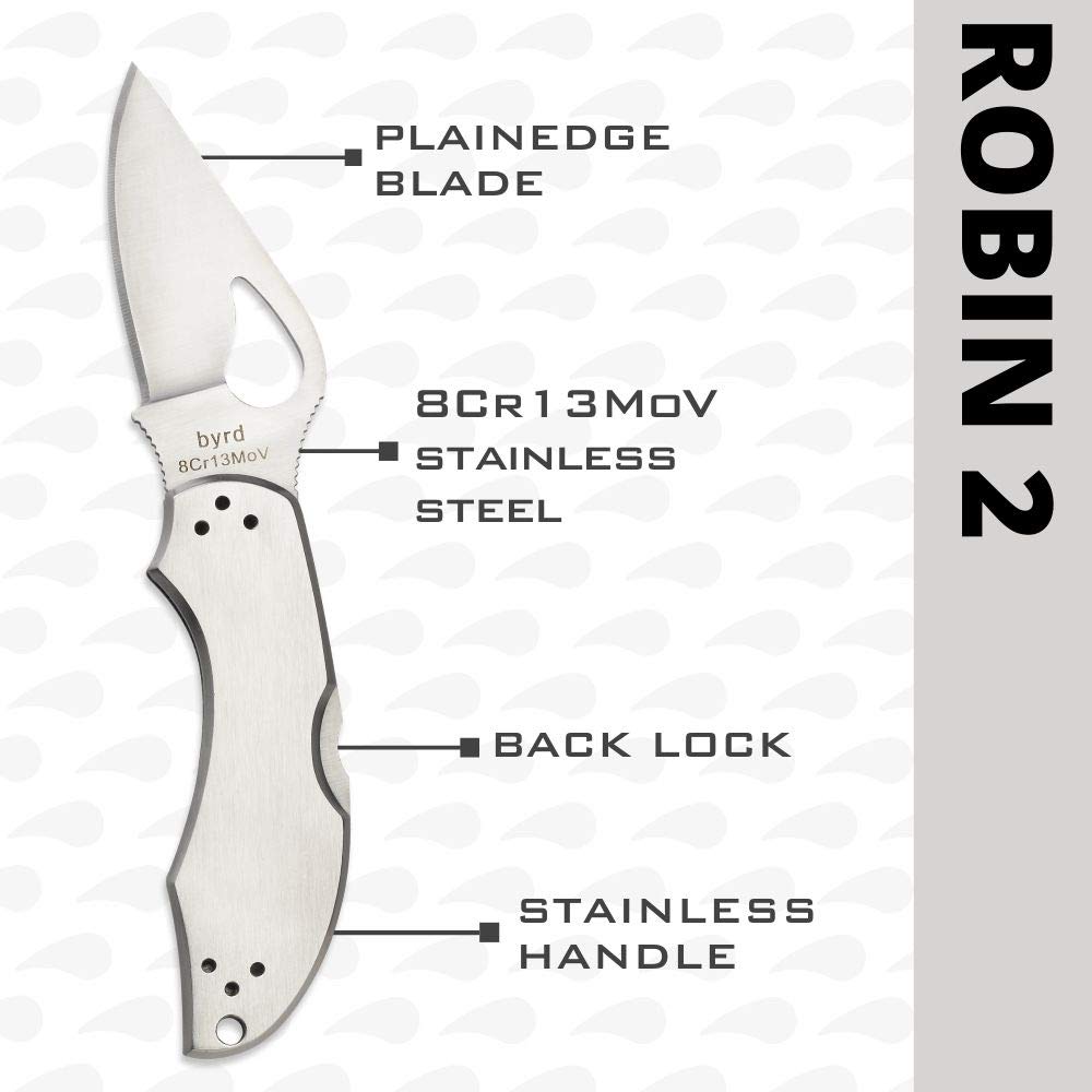 Byrd by Spyderco Robin 2 Folding Pocket Knife with 2.4" 8Cr13MoV Steel Blade and Stainless Steel Handle - EDC Knife for Men and Women, Perfect for Hunting, Tactical, Camping - PlainEdge - BY10P2
