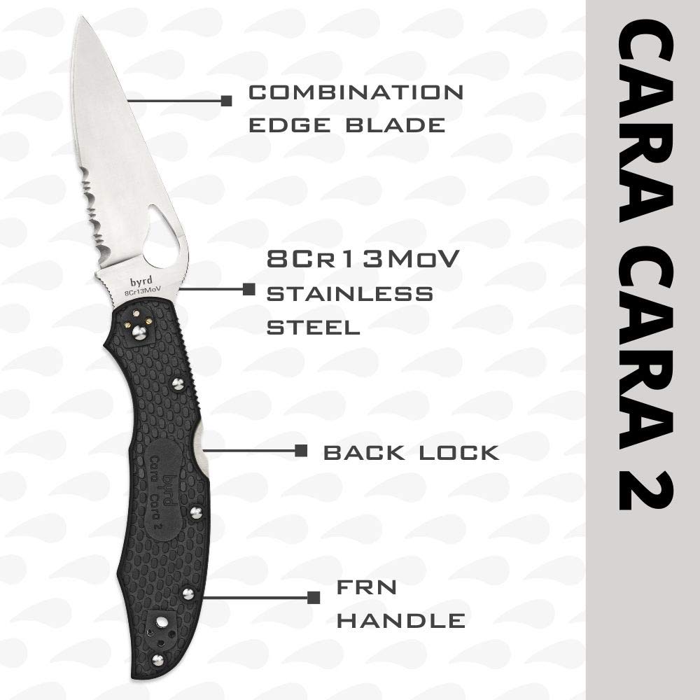 Spyderco Byrd Cara Cara 2 Lightweight Knife with 3.75" Stainless Steel Blade and Black Non-Slip FRN Handle - CombinationEdge - BY03PSBK2